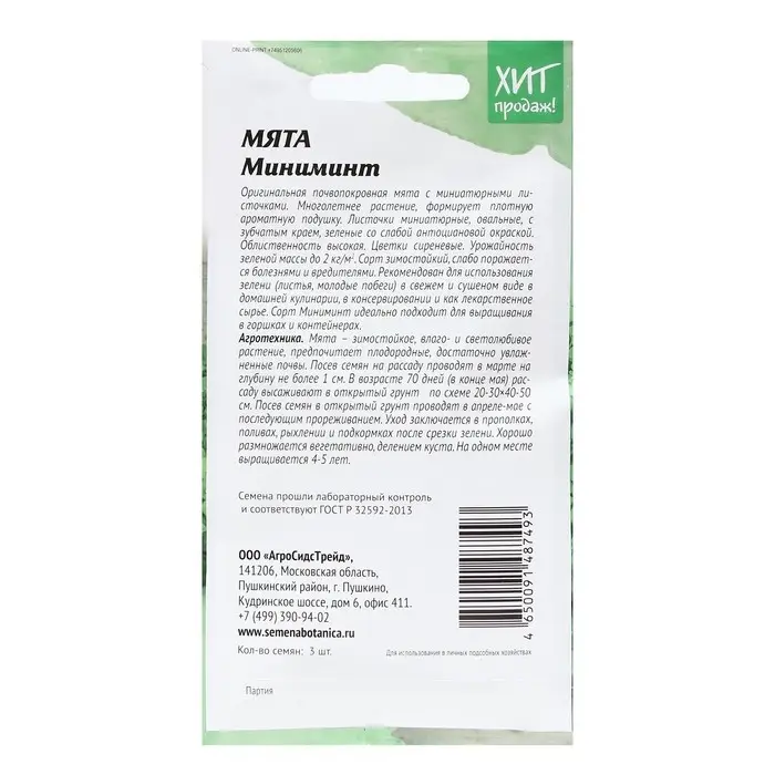 Семена Мята мексиканская "Янтарная свежесть", ц/п, 0,05 г
