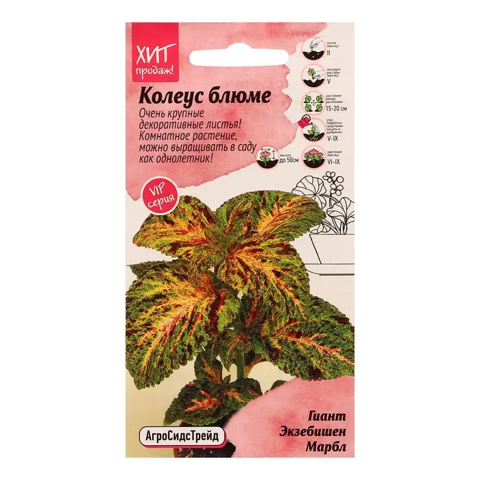 Семена цветов Колеус, серия Русский размер, 4 шт