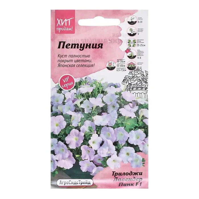 Семена цветов Петуния "Трилоджи Лавендер Пинк", 5 шт