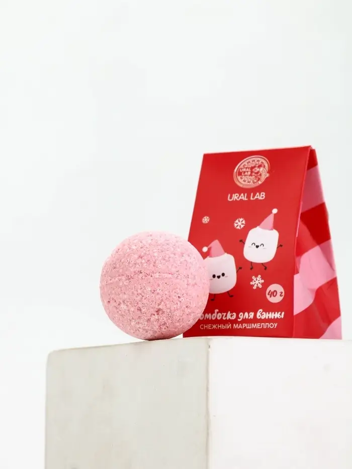 URAL LAB Розовый НГ Бомбочка для ванны "Снежный маршмеллоу", 40 гр