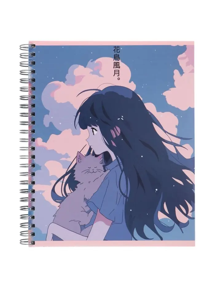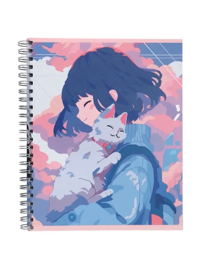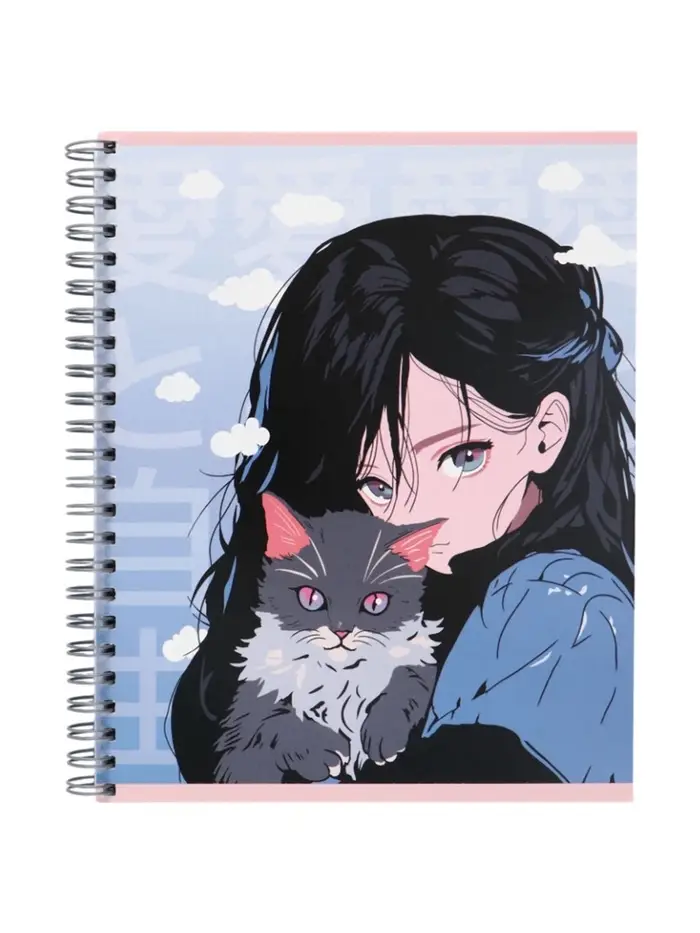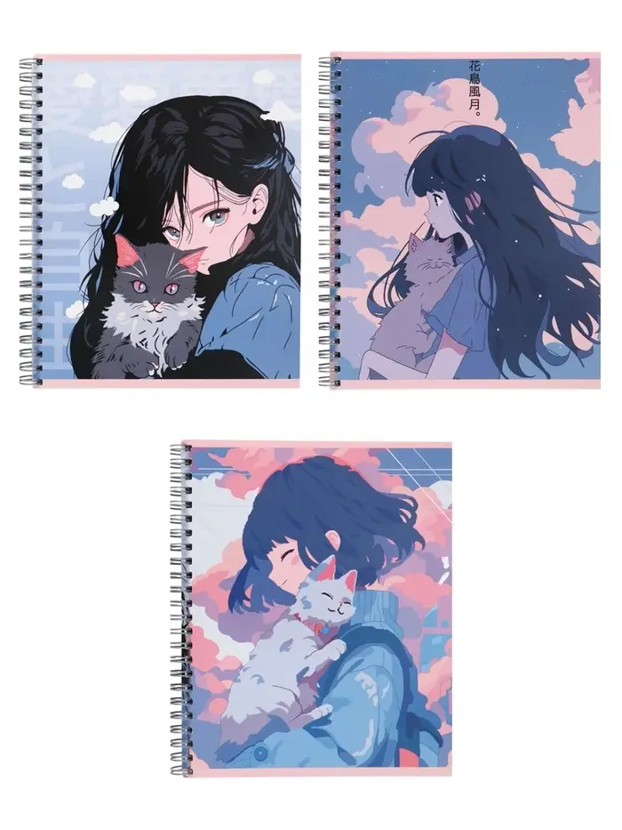 Компл тетр из 3шт 96л кл на гребне Аниме Девочка с котом, обл мел карт, офсет (10296906)