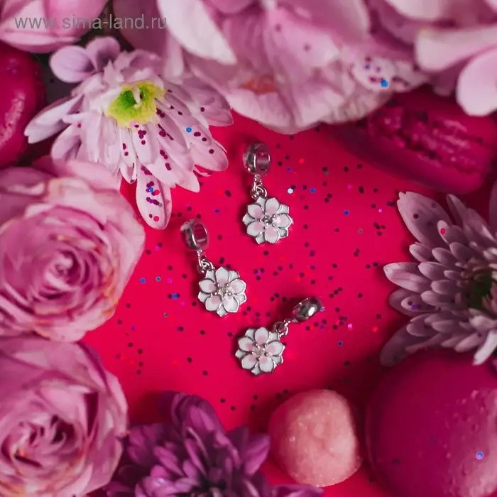 Подвеска «Цветок с эмалью», цвет бело-розовый в серебре