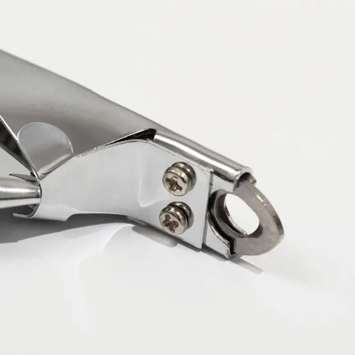 - Гильотинный механизм: Лезвие двигается строго по направляющим, обеспечивая ровный и быстрый срез. Подходит для прямого доступа к когтю — особенно удобно, если питомец не лежит спокойно.
