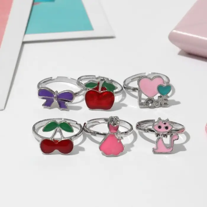 Кольцо детское «Выбражулька» ассорти для девочек, форма МИКС, цвет МИКС, безразмерное