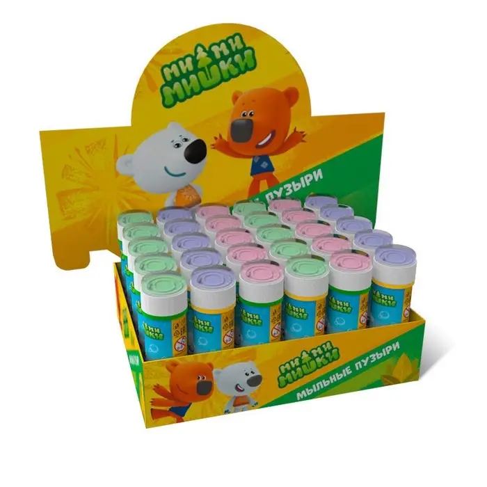 - Благодаря правильно разработанному составу мыльные пузыри легко выдуваются и их очень много. Раствор имеет приятный запах. На крышке есть игра-лабиринт.