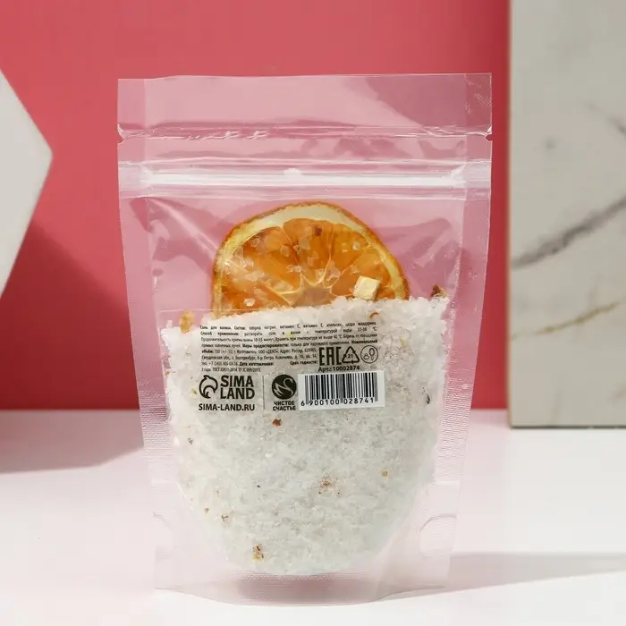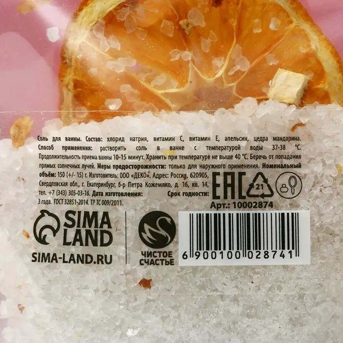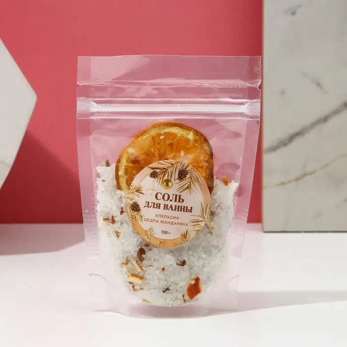 Соль для ванны с цедрой мандарина, можжевеловой ягодой и календулой, 150 г, ЧИСТОЕ СЧАСТЬЕ