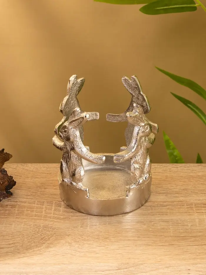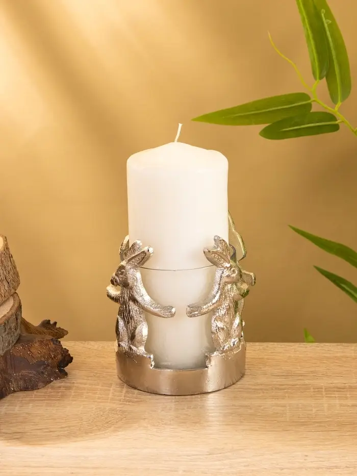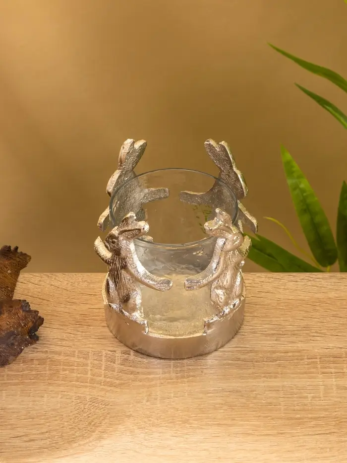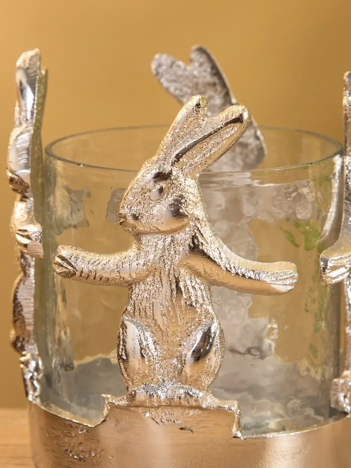 Подсвечник со стеклом "Влюбленные зайцы" алюминий 8,5х8,5х9 см
