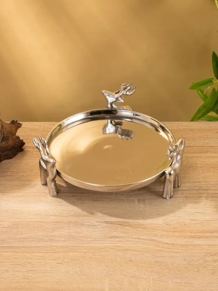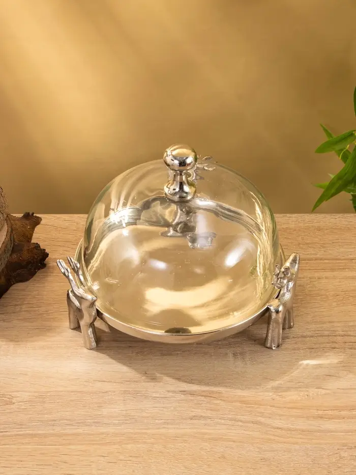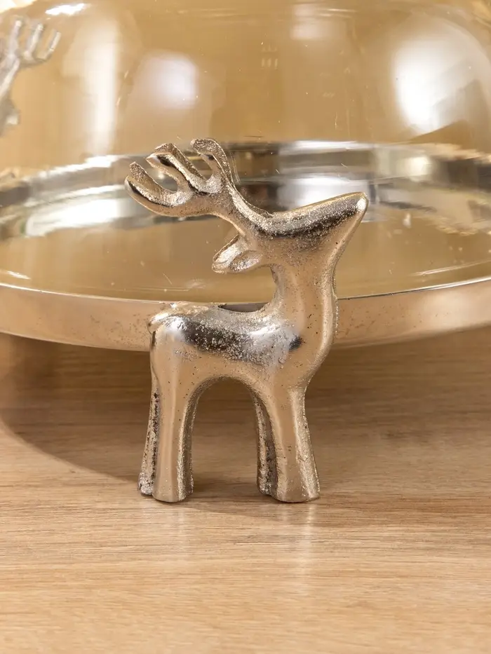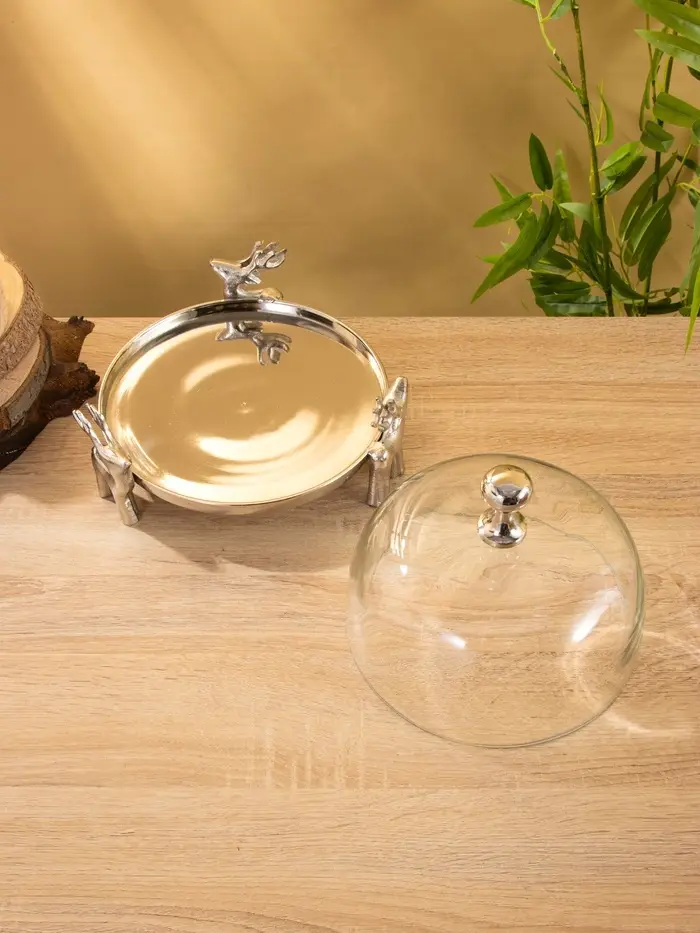 Тортовница со стеклянной крышкой "Олени" 23х23х20 см, алюминий