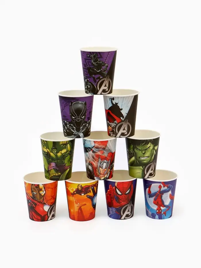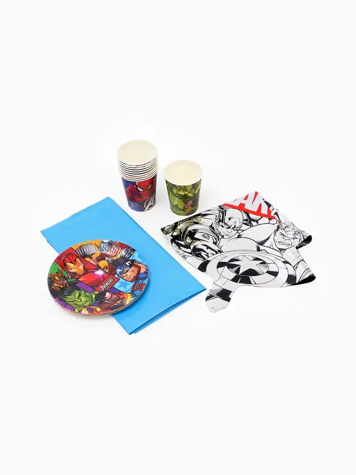 Набор бумажной посуды 10 персон: стакан, тарелка, скатерть, Мстители