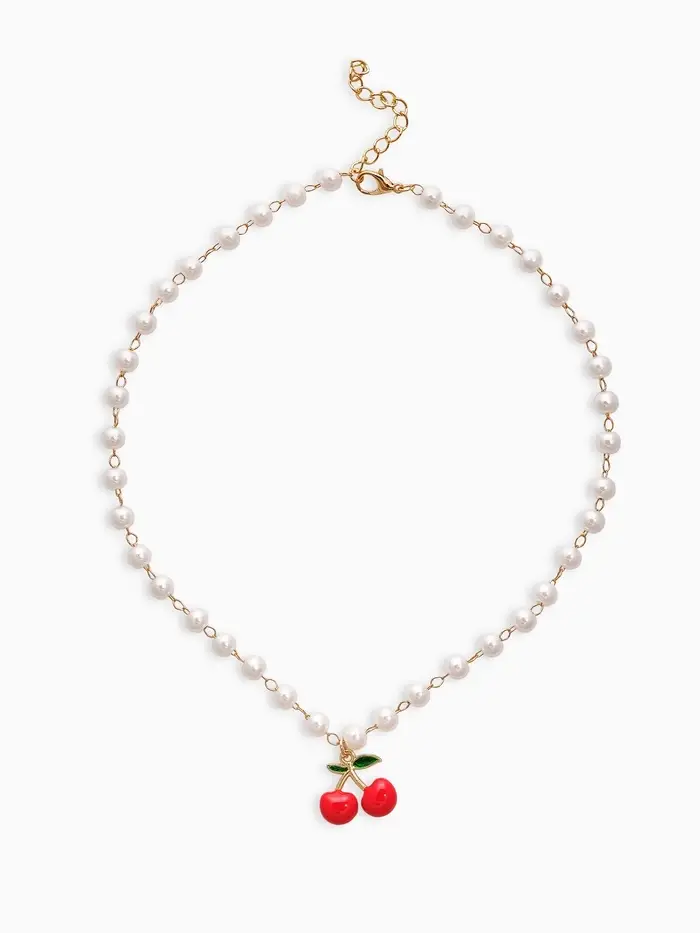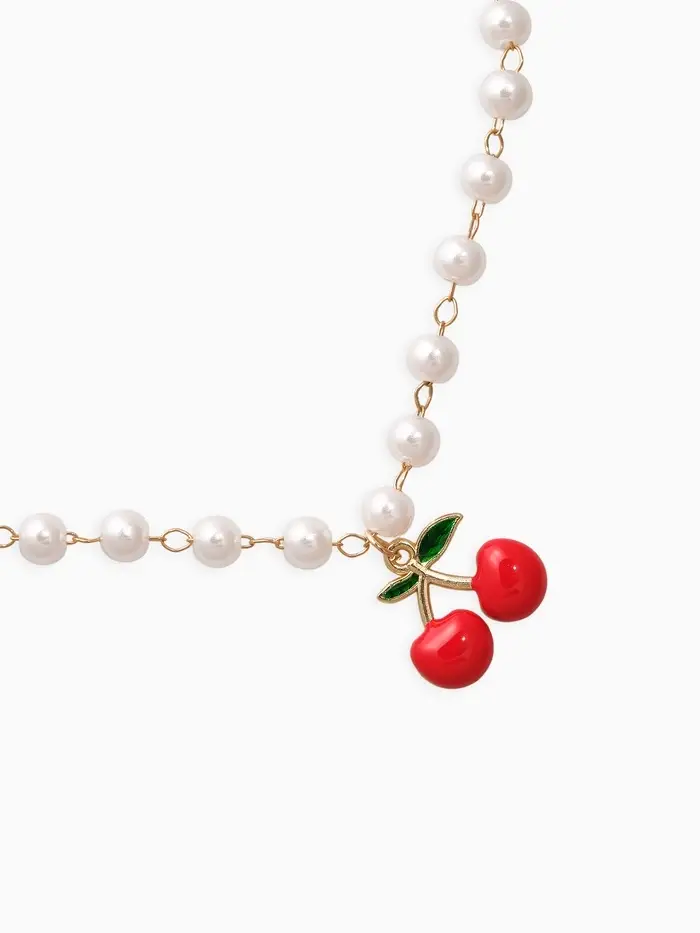 Колье на жемчужной дорожке "Вишенка", цветная в золоте 40+удл, d6