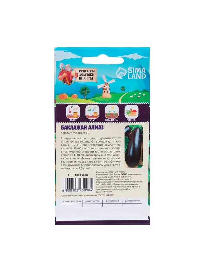 Семена Баклажан "Алёшка", F1, скороспелый, 0,05 г