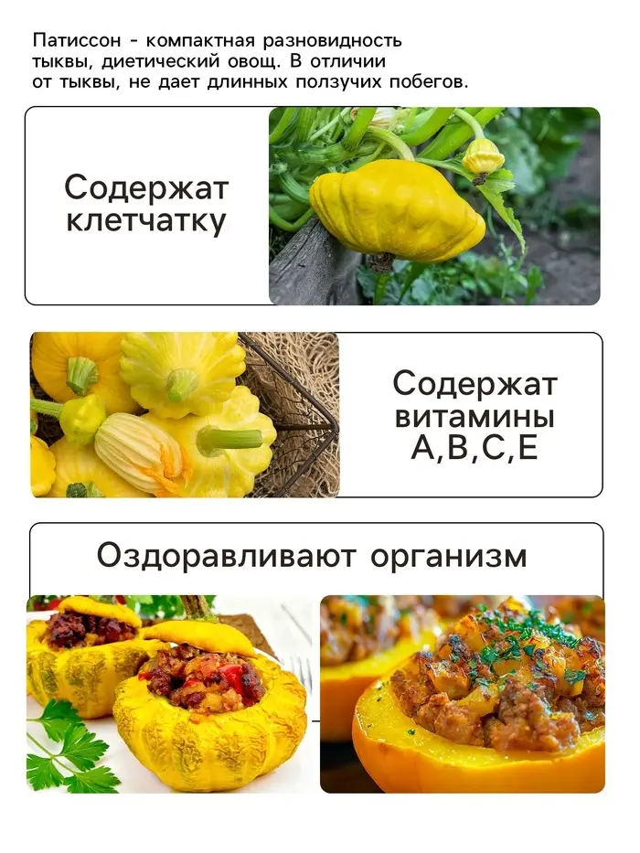Патиссон «Солнышко» — это надежное решение для тех, кто хочет получить богатый урожай, не затрачивая много усилий. Яркие, аппетитные плоды поднимут настроение и станут гордостью вашего огорода. Этот сорт сочетает в себе доступную цену, простоту выращивания и отличные вкусовые качества. Не упустите возможность порадовать себя и своих близких экологически чистыми овощами, которые будут радовать вас весь сезон. Закажите семена прямо сейчас и сделайте первый шаг к богатому урожаю!