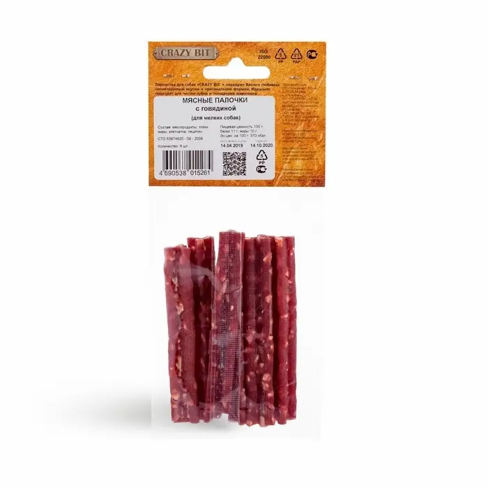 Мясные лакомства "Crazy Bit" - это продукты с чистящими гранулами, которые эффективно чистят зубы. При поедании лакомства, зубы собаки глубоко погружаются до основания дёсен, соприкасаясь с чистящими гранулами, тем самым удаляя зубной налёт и массируя дёсны собаки.