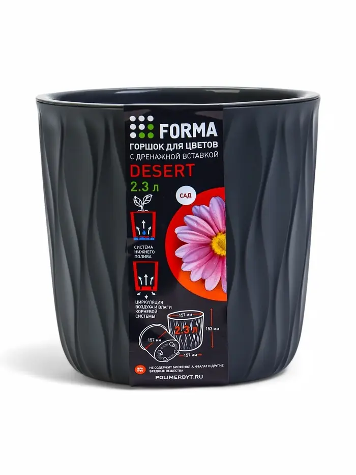 Кашпо со вставкой 2,3 л d15,7 см h15,2см "Desert" пластик серый
