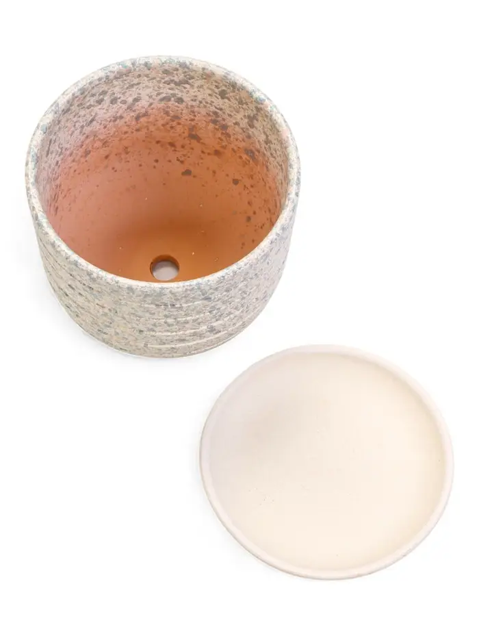 Горшок цветочный с поддоном 0,8 л, белый керамика "Пряности" (М)