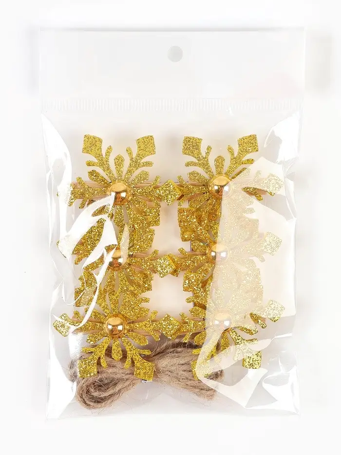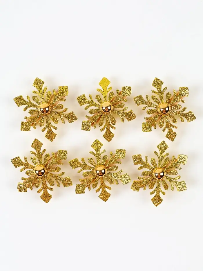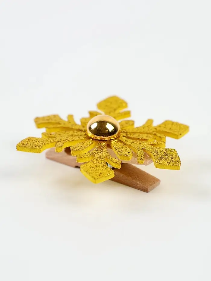 Набор декоративных прищепок "Новогодние снежинки" цвет золотой, набор 6 шт.
