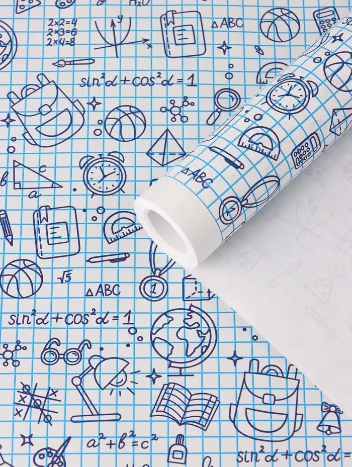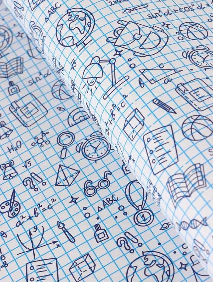 Бумага упаковочная крафт «Школьная пора», голубой/синий на белом фоне 0.7×10±5% м