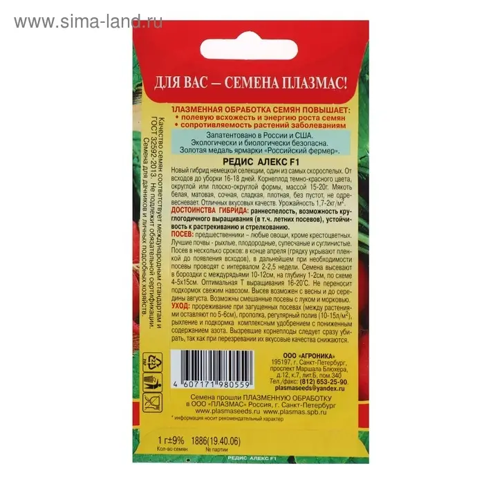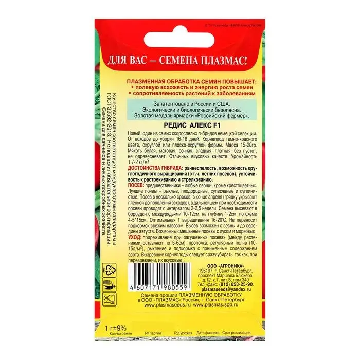 Семена Редис "Алекс" F1, ультраскороспелый, 1 г