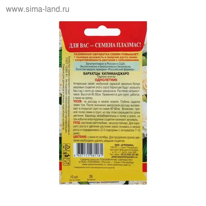 Семена Бархатцы "Килиманджаро", 10 шт