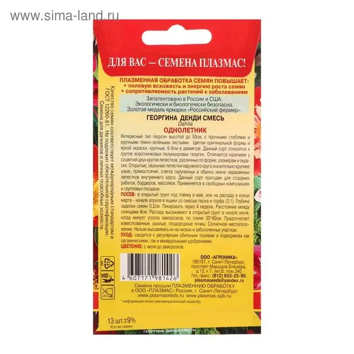 Семена цветов Цв Георгина Смесь "Фигаро",0,1 г