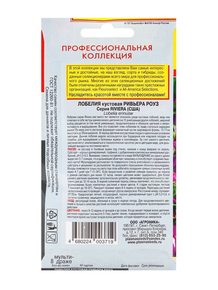 Семена Лобелия куст. "Ривьера Роуз", драже, 8шт