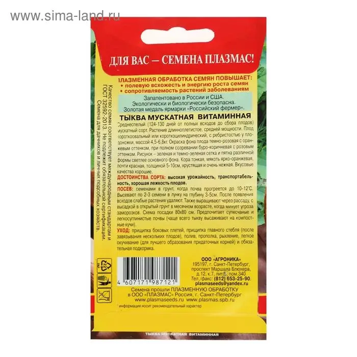 Семена Тыква"Сибирская малышка"3шт* Селекция Агрос