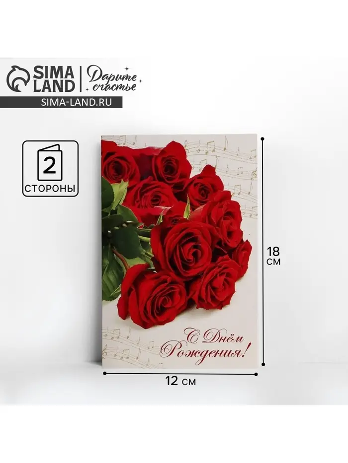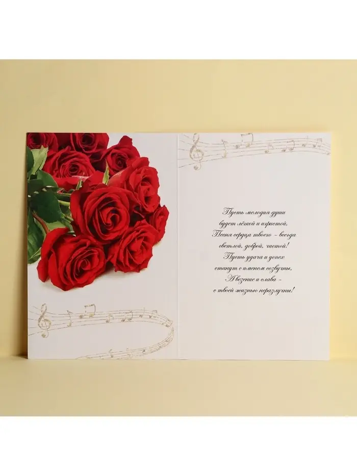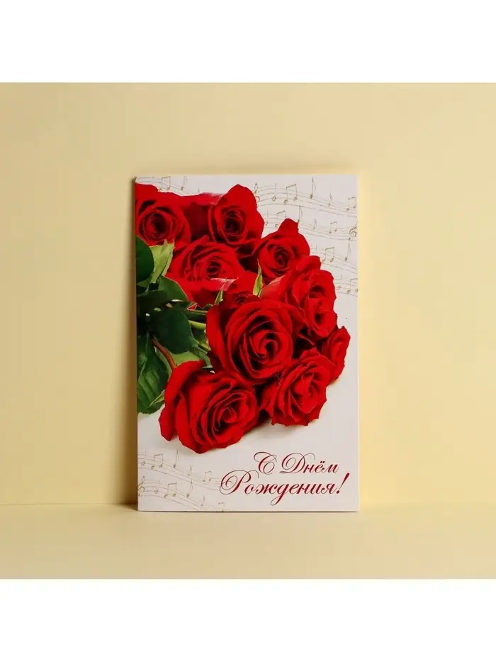 Открытка «С Днем Рождения», розы и ноты, 12 × 18 см