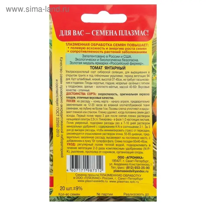 Семена Томат "Янтарный" ультраскороспелый, 25 шт