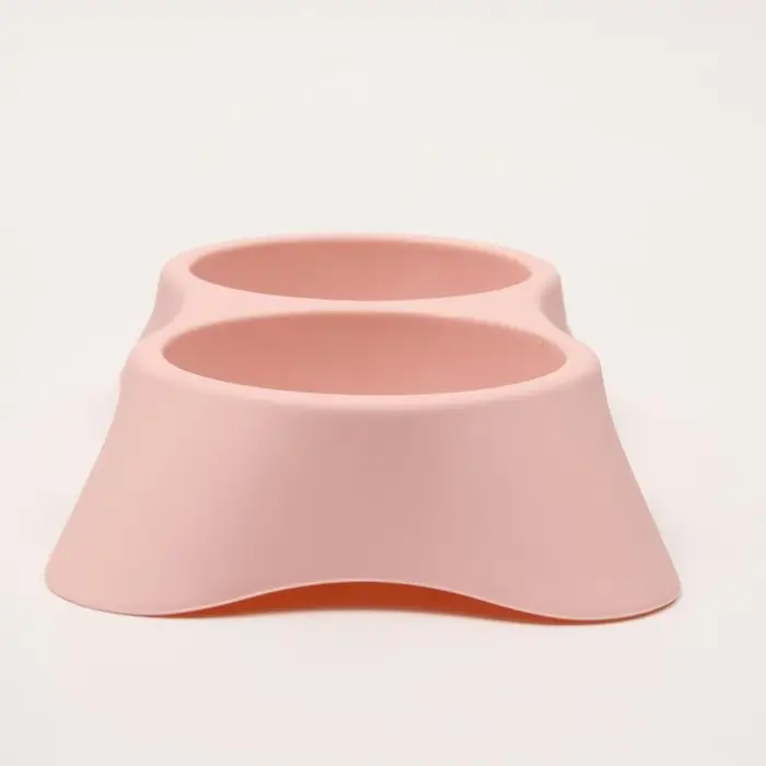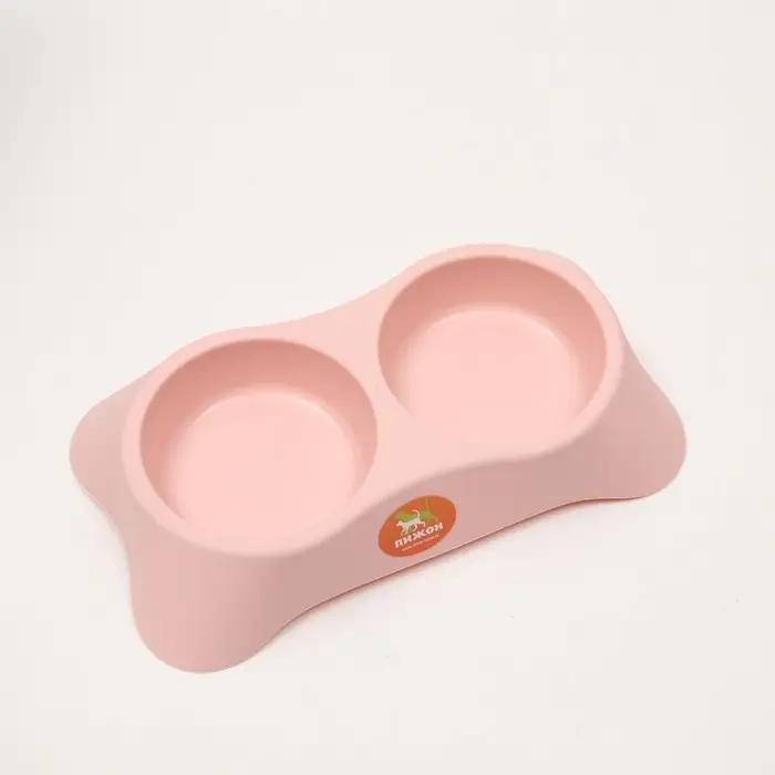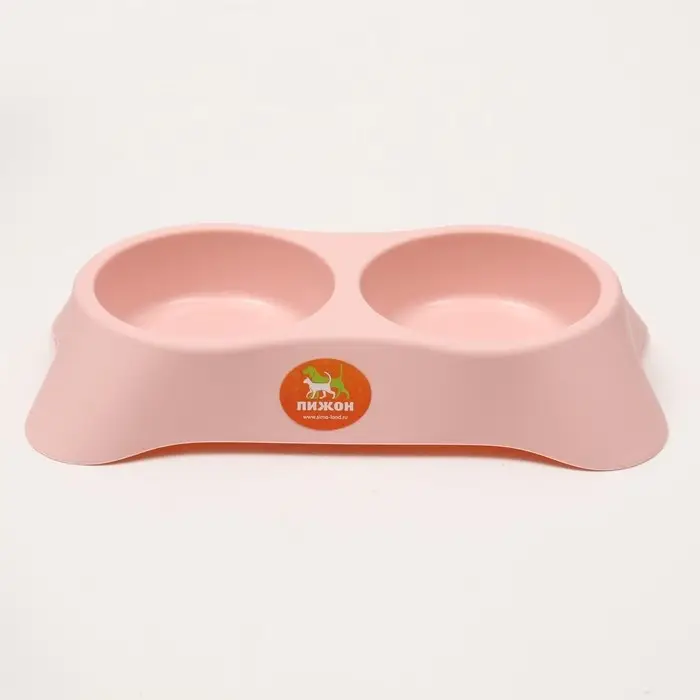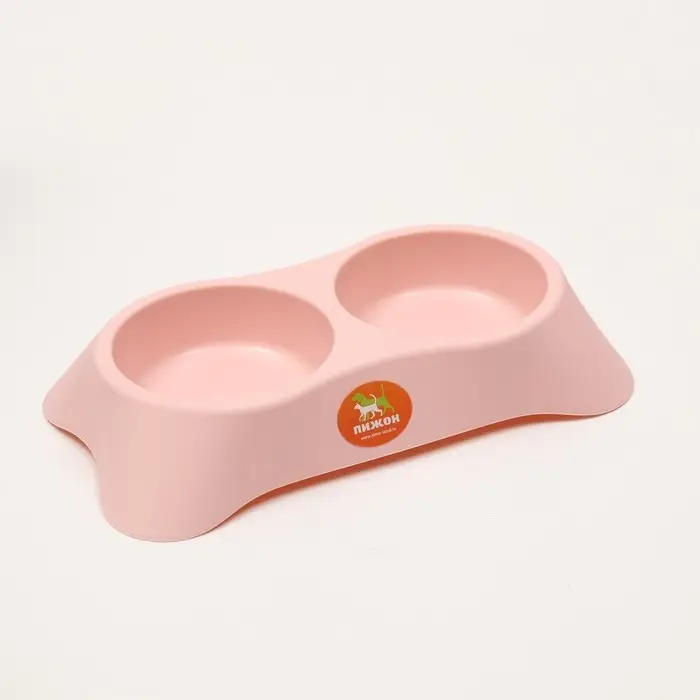 Миска пластиковая двойная, 28 х 16 х 5 см, розовая