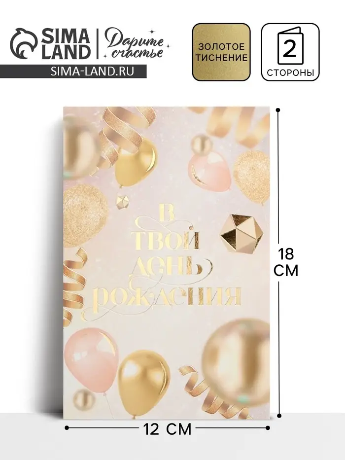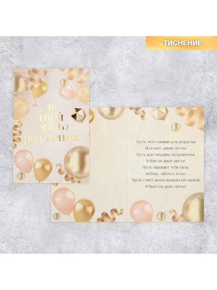 Открытка «В твой день рождения», тиснение, 18×12 см