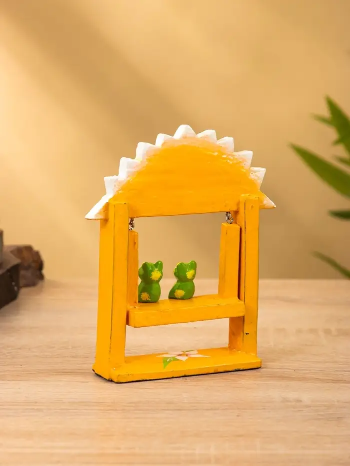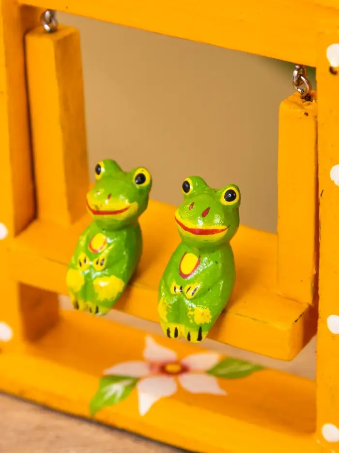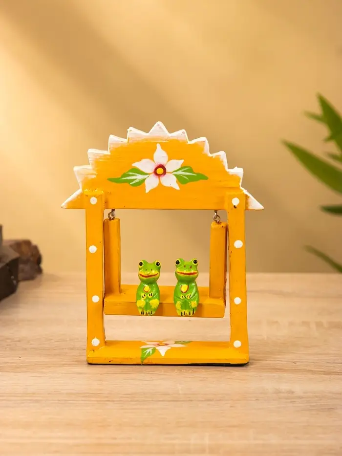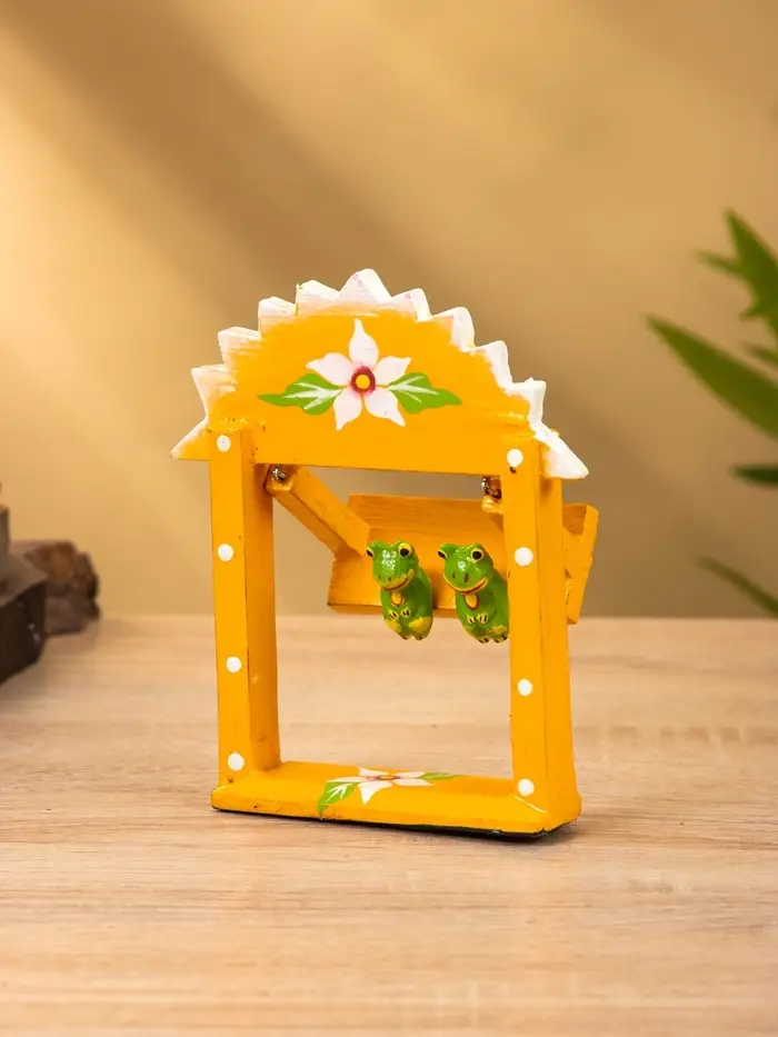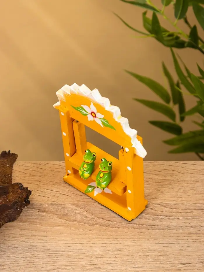 Сувенир "Лягушата на качелях" дерево 10х3,5х15 см, цв. оранжевый