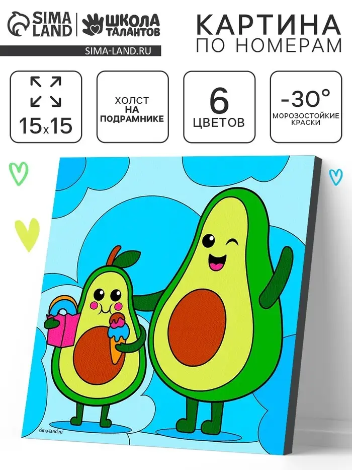 Картина по номерам "Авокадо с мороженым" 15х15 см.