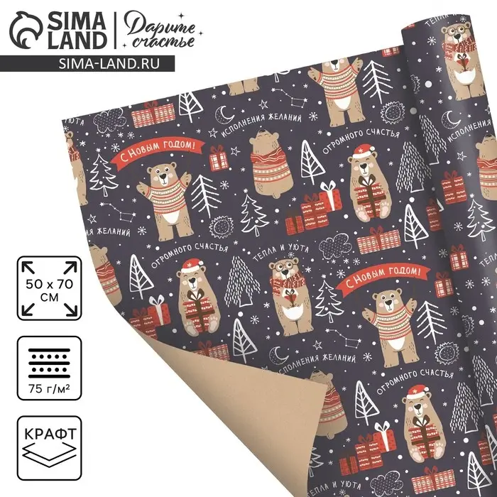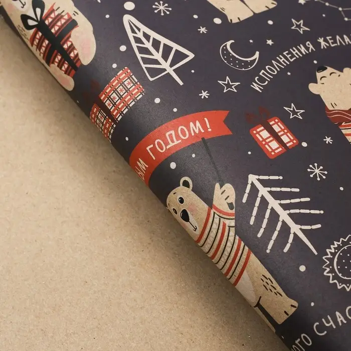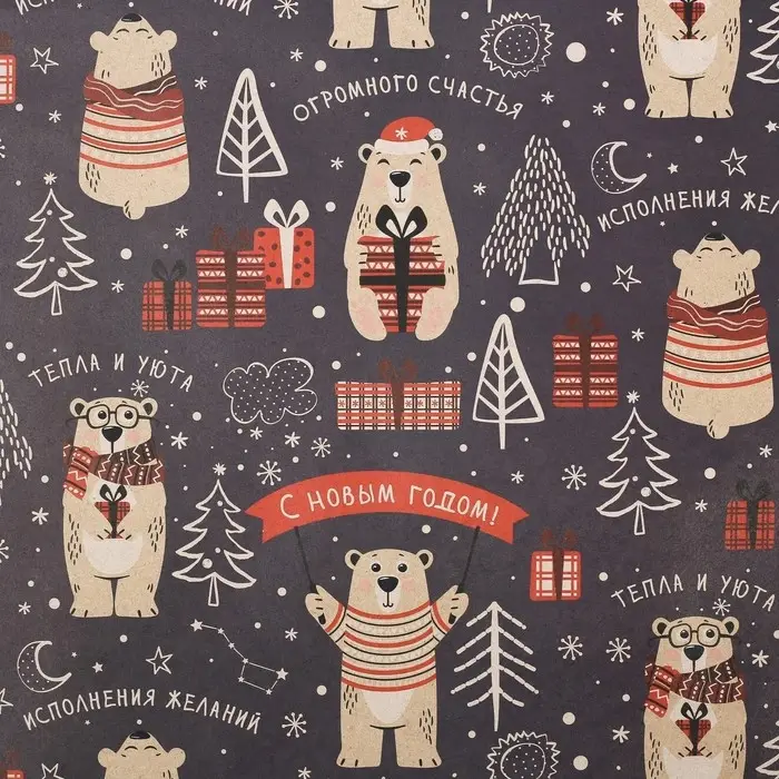 Бумага упаковочная крафтовая «Полярный мишка», 50 х 70 см