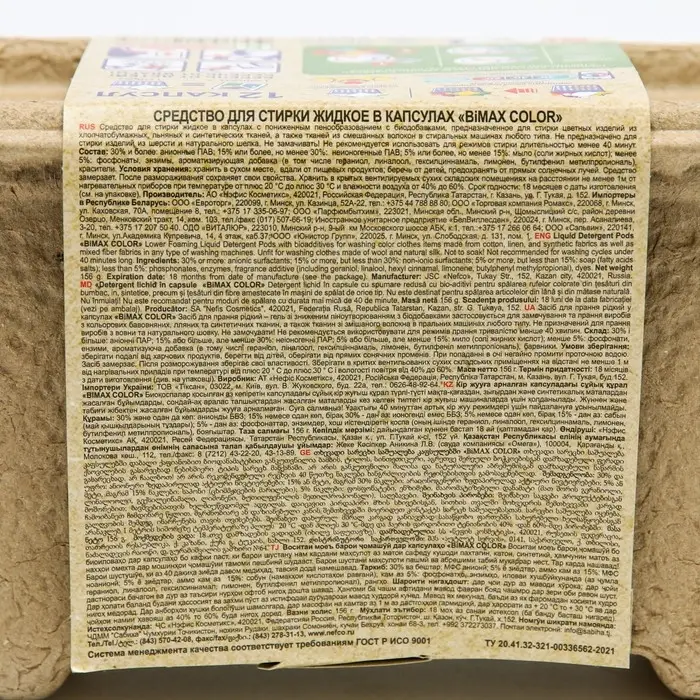 Капсулы для стирки BiMax Color обладают концентрированными очищающими свойствами. Инновационная пленка капсул д полностью растворяется при контакте с водой, позволяя мощным технологиям удалять различные виды пятен. Одна капсула содержит необходимое для стирки количество лучшего жидкого средства.