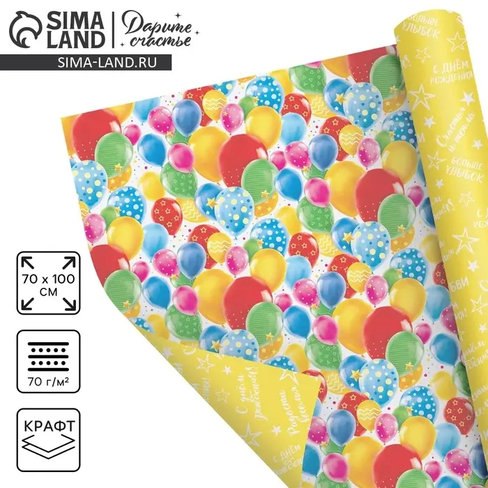 Бумага упаковочная двухсторонняя крафтовая «Яркие шары», 70 х 100 см