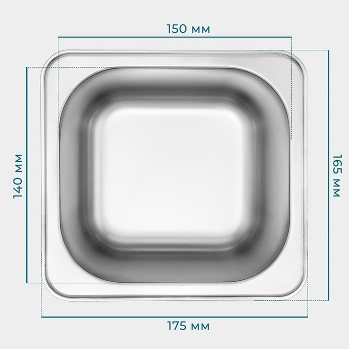 Гастроемкость 1/6 из нержавеющей стали, 100 мм, 17,6×16,2×10 см, толщина 0,8 мм
