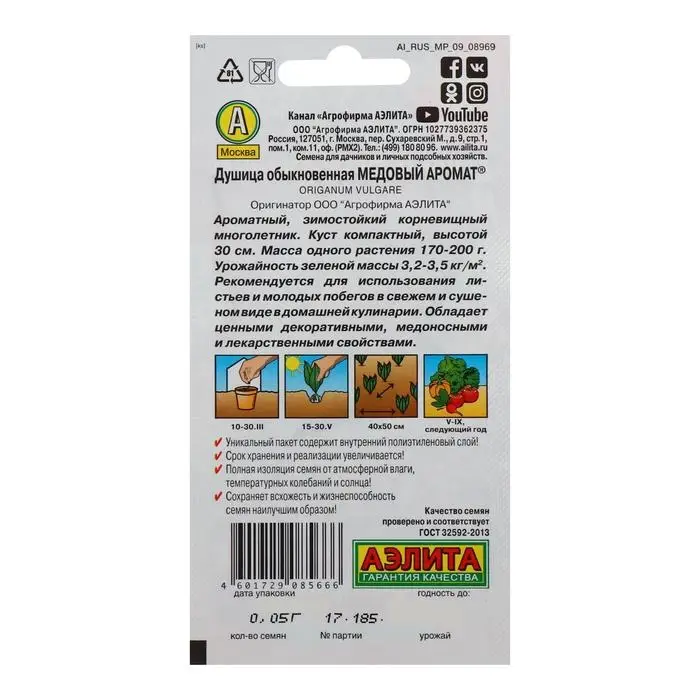 Семена Душица обыкновенная "Медовый аромат", 0,05 г