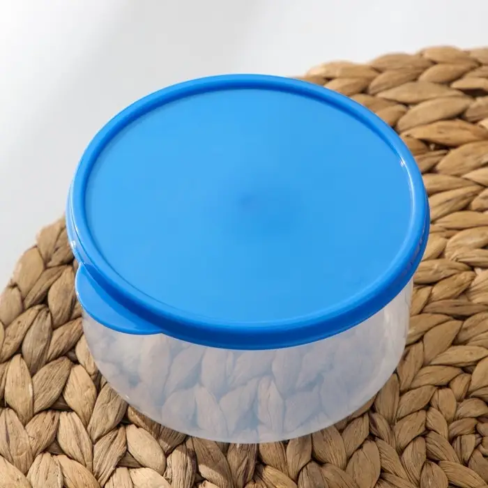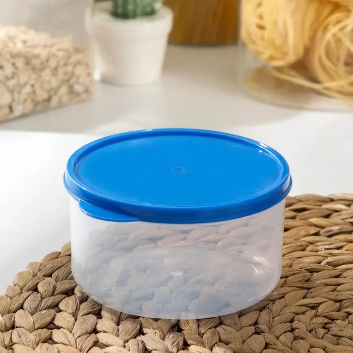 Контейнер круглый Доляна, пищевой, 500 мл, прозрачный, крышка синяя