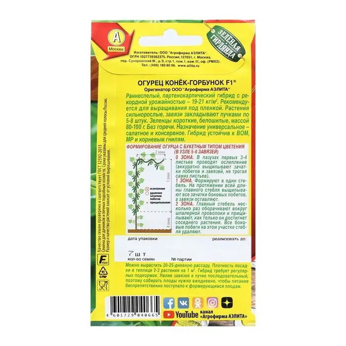 Семена Огурец «Конек-горбунок» F1, раннеспелый партенокарпический, 7 шт.