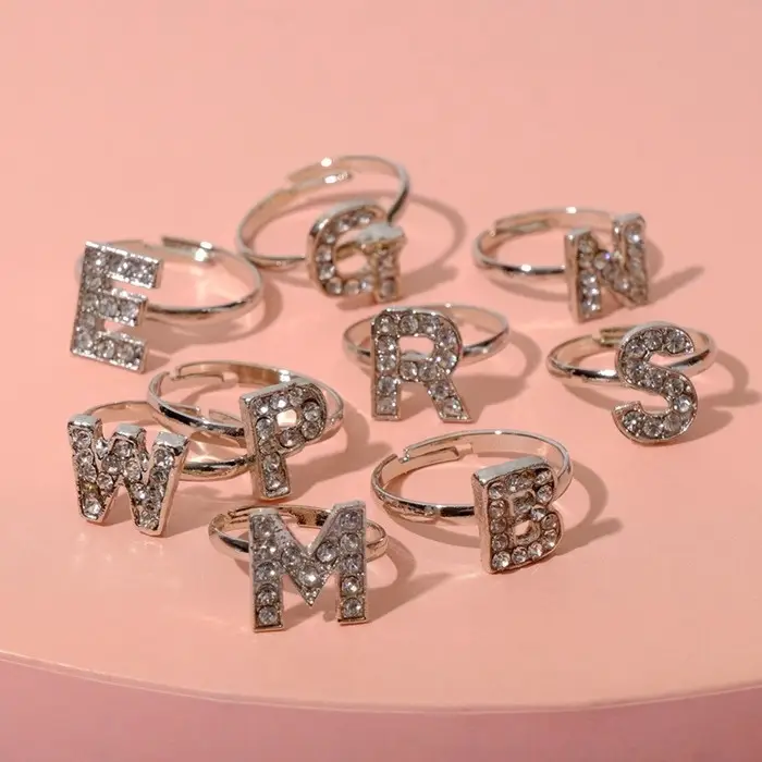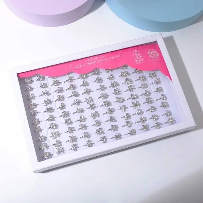 Кольцо «Выбражулька» английский алфавит, безразмерное, белое в серебре