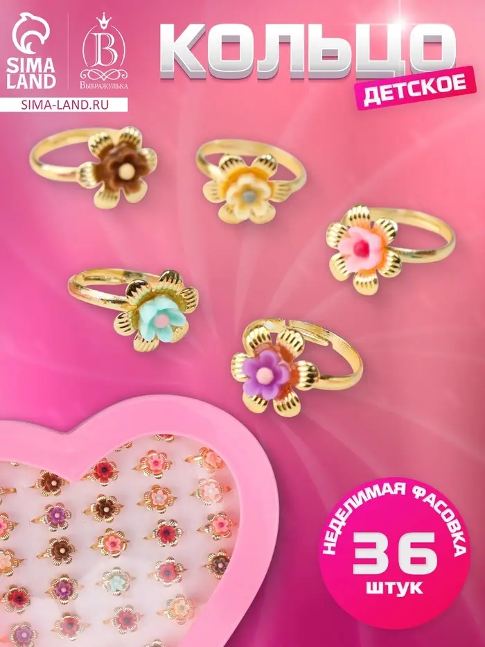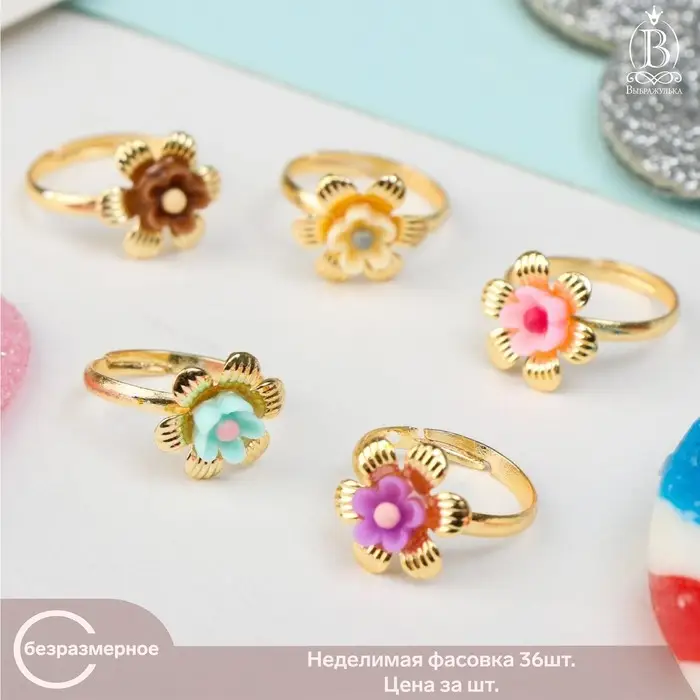 Кольцо детское «Выбражулька» ассорти для девочек, форма МИКС, цвет МИКС, безразмерное