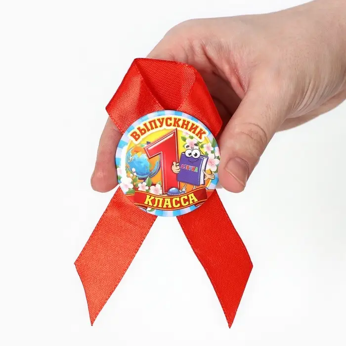 Значок с лентой "Выпускник 1 класса", 4,5 см, набор 5 шт