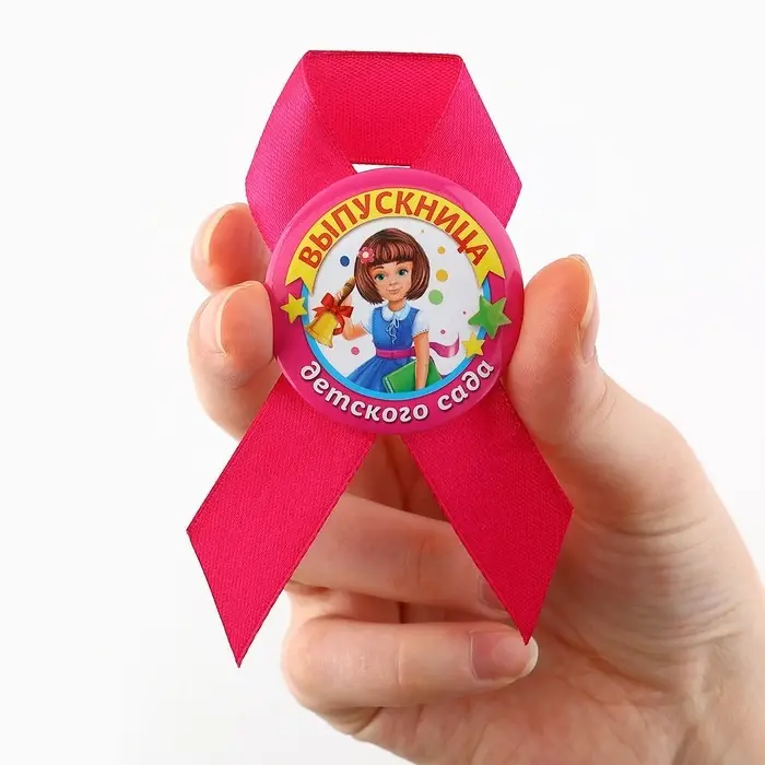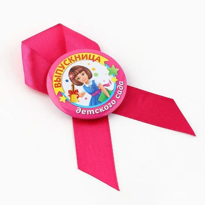 Значок с лентой "Выпускница детского сада", диам 4,5 см, набор 5 шт