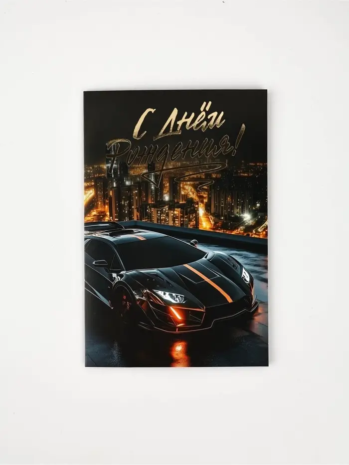 Открытка «С Днём рождения», машина, тиснение, 12 × 18 см