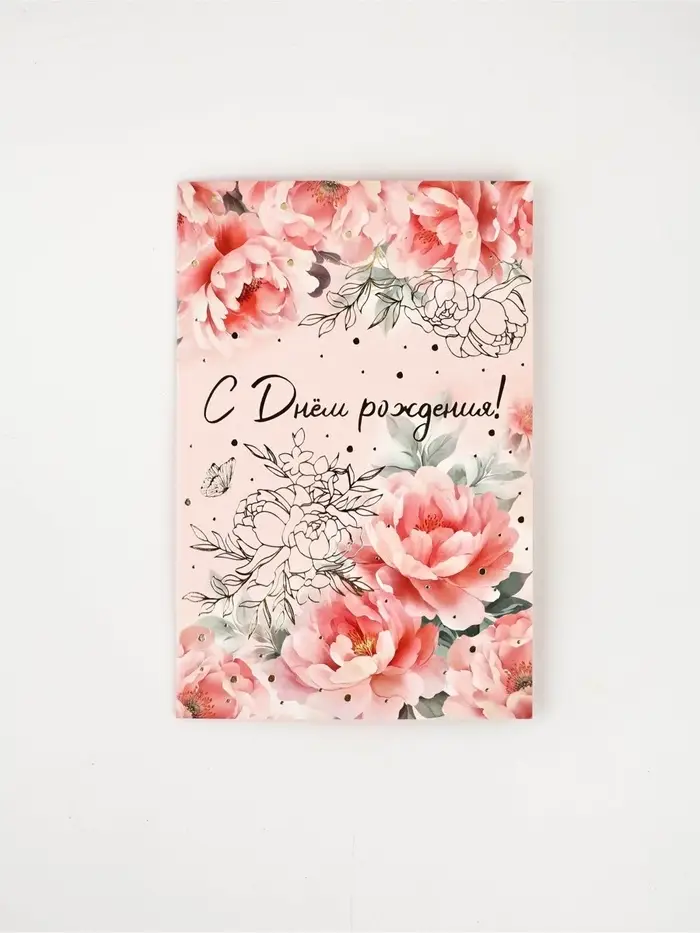 Открытка «С Днём рождения», цветы, тиснение, 12 × 18 см