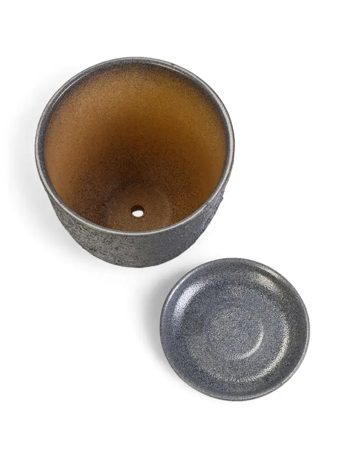 Горшок цветочный с поддоном 1,8 л, керамика "Шагрень" (М)