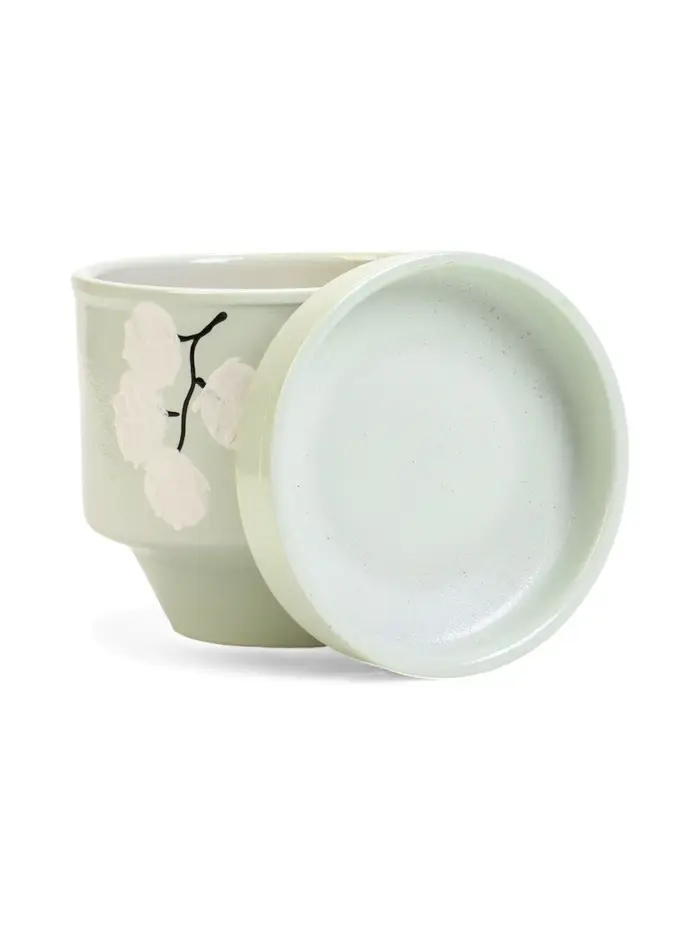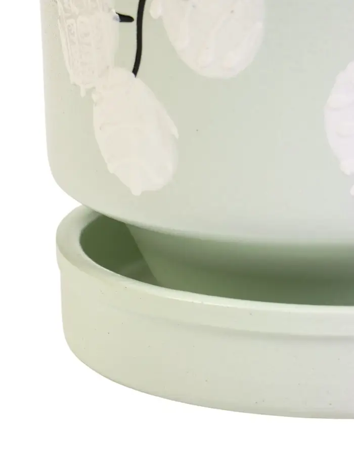 Горшок цветочный с поддоном 0,9 л, керамика "Листья" (М)