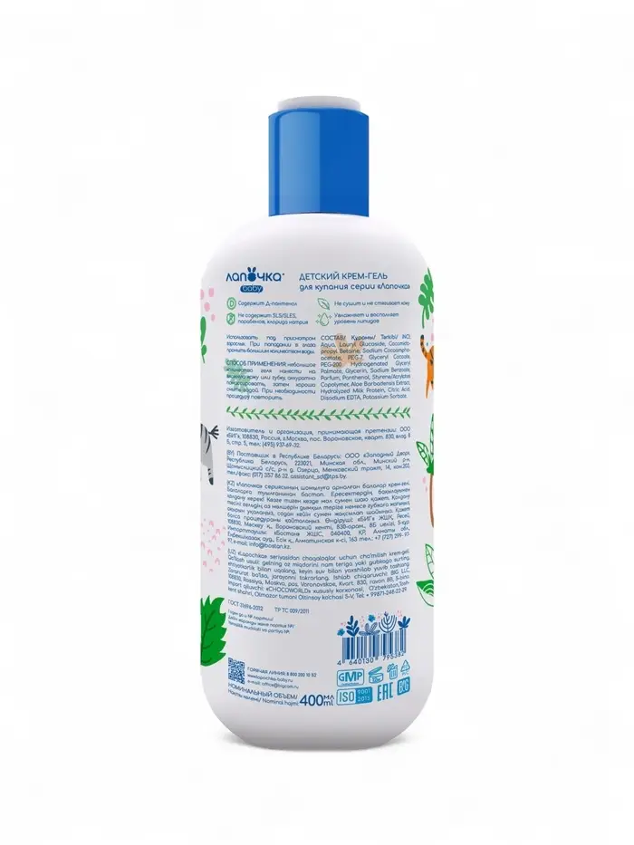 Детский крем-гель для купания «Лапочка» — средство, способное превратить водные процедуры в веселый праздник. Нежный и заботливый, как мамины руки, он не содержит мыла и не вызывает слез, а отсутствие сульфатов (SLS,SLES), парабенов, хлоридов и красителей позволяет использовать его для самой чувствительной кожи ребенка с рождения.