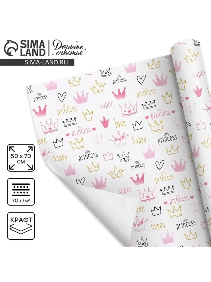 Бумага упаковочная крафтовая «Для девочки», 50 х 70 см