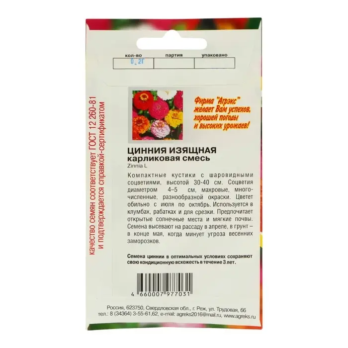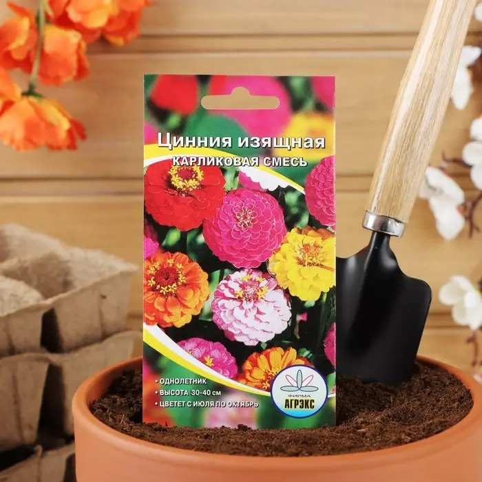 Семена цветов Цинния изящная карликовая смесь, О, 0,2-0,3 г